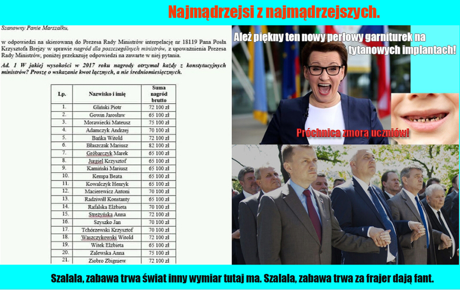 No to kiedy Szanowny Prezes zostanie odznaczony orderem Budowniczego Polski Racjonalnej? Za entuzjastyczne zadowolenie z władz, obywatelską troskę, optymalizację wyborczą polegającą na działaniach zapewniających zawsze zwycięstwo sprawującym władzę.