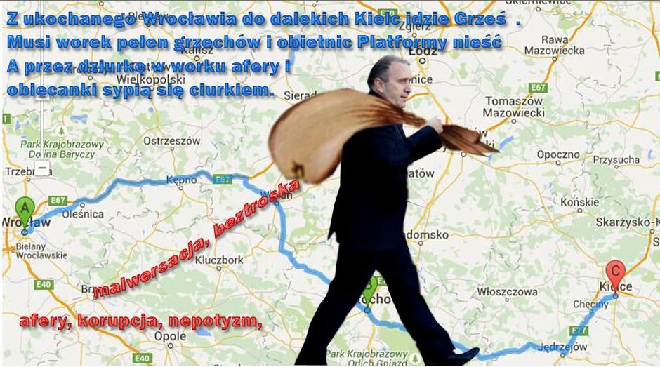 Idzie Grześ musi worek pełen grzechów i obietnic Platformy nieść