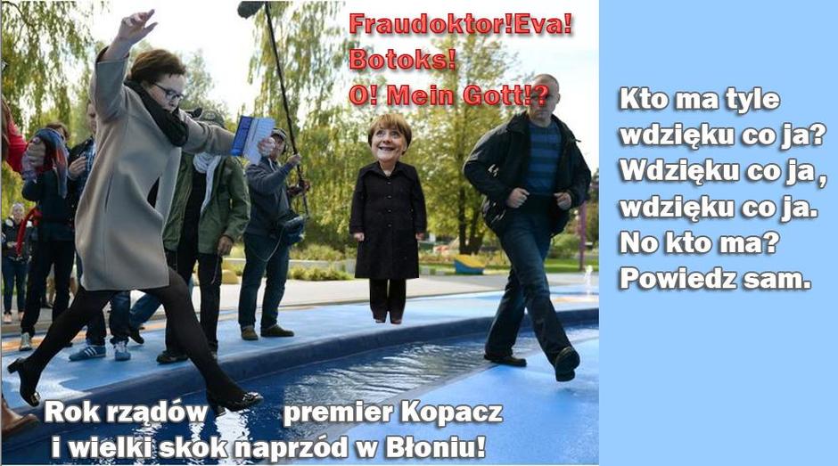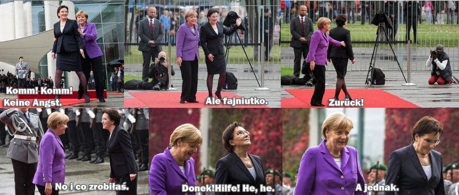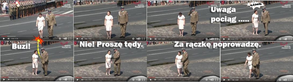 Ewa Kopacz przed rozpoczęciem defilady stanęła w warszawskich Alejach Ujazdowskich przed pododdziałem reprezentującym poszczególne rodzaje sił zbrojnych. Wcześniej powitały ją okrzyki mieszkańców Warszawy: Ewa, gdzie masz pociąg?! Być może wytrąciło to „doktor Ewę” z równowagi, bo po krótkiej ceremonii pomyliła kierunki. Na właściwą drogę, zdecydowanym chwytem za ramię, musiał naprowadzić szefową rządu towarzyszący jej oficer.